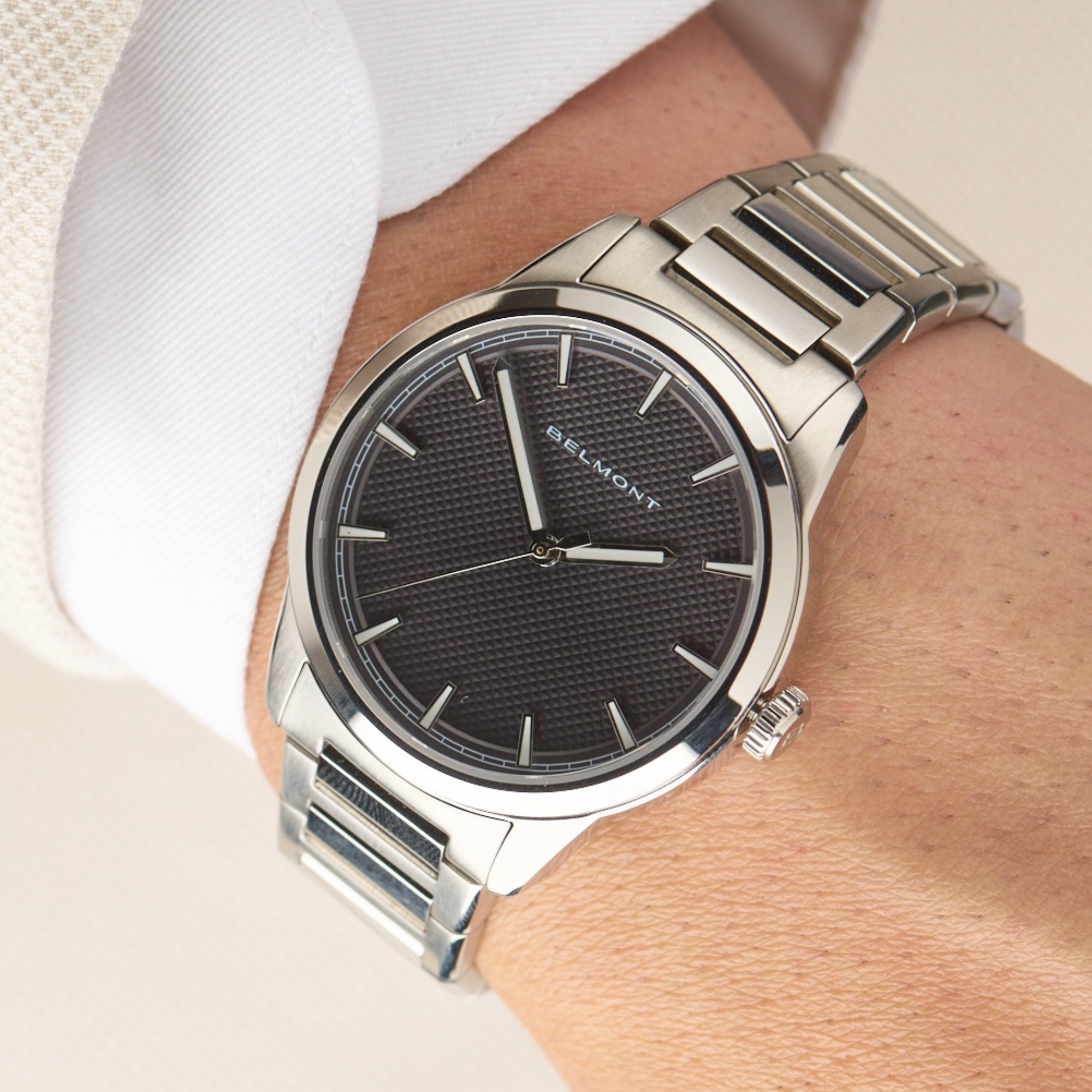This harmonious blend of elegance and functionality is housed within a 40mm 316L stainless steel case, expertly finished with a blend of brushed and polished surfaces. Completing the refined aesthetic are premium stainless steel quick-release straps, offering both comfort and the versatility to effortlessly adapt the timepiece to any occasion.